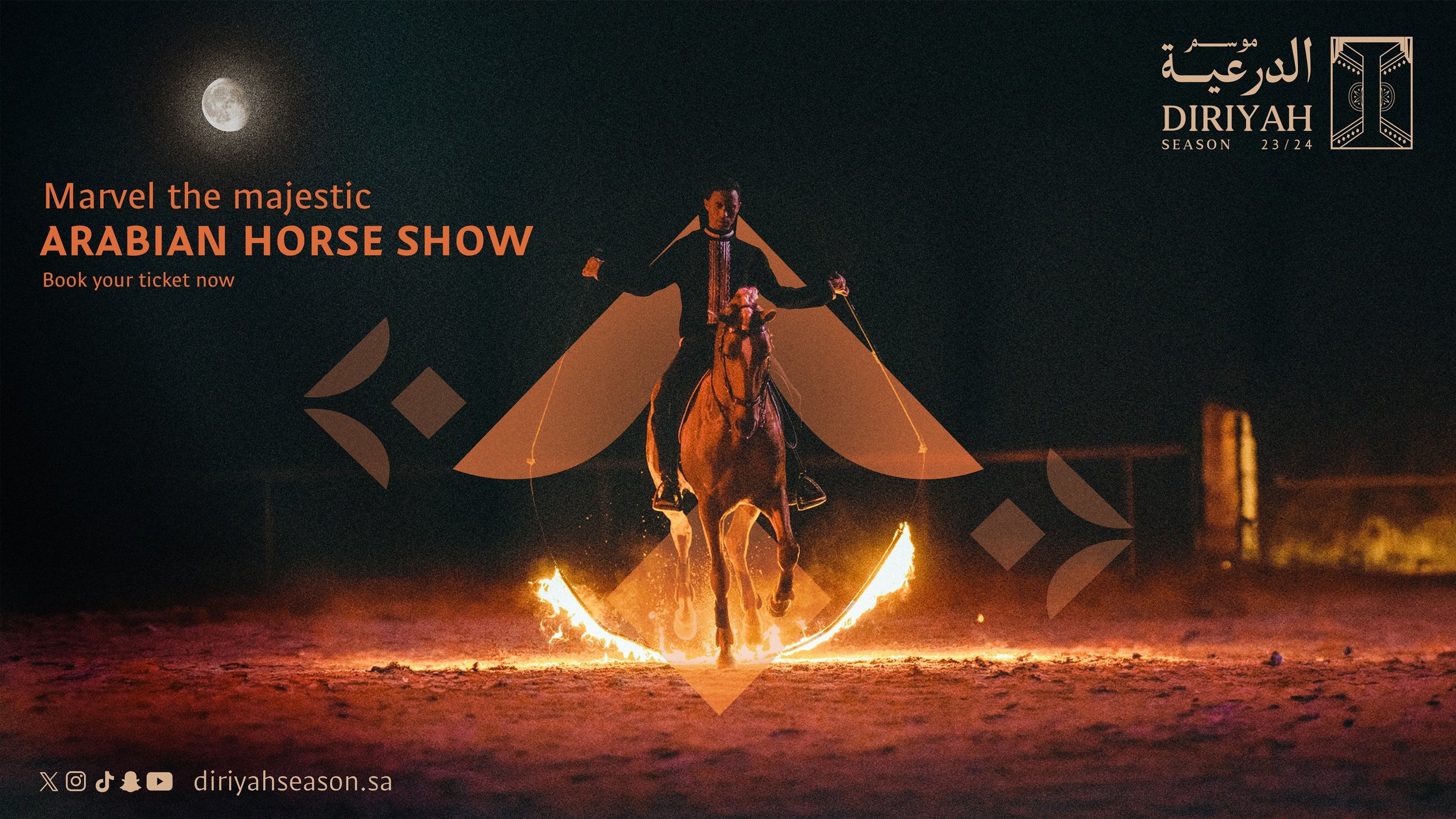 Inspired by the brand’s original tagline "من ها الأرض", we developed the concept “أرض تريوك” a poetic call to all cultural enthusiasts at the heart of the campaign is a stirring original song performed by renowned Saudi artist Rasheed Al Fares and narrated through the eyes of a young girl guided by a majestic Saudi knight on horseback through Diriyah Season’s diverse programs, bringing to life the richness, wonder, timeless beauty of Saudi heritage in a cinematic and story-driven reveal.